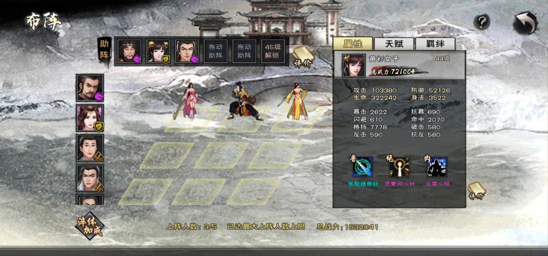 我们只用3个角色多一个都不要这是一个重点,为了压低战斗力。为什么战斗力排名算的是你曾经的最高战斗力,不要以为战斗力很高怎么怎么样,没有意义,什么奖励都没有,还会加大游戏难度。如果记录了你太高的战斗力你排名太高,就算下阵容也救不了你,因为系统只认最高的时刻,到了慕容山庄,你发现遇到的都打不过那就是你排名太高造的孽。