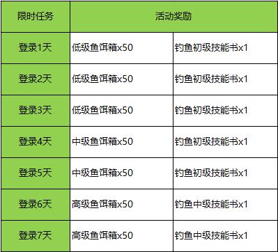 活动内容:活动期间登陆即可领取钓鱼材料