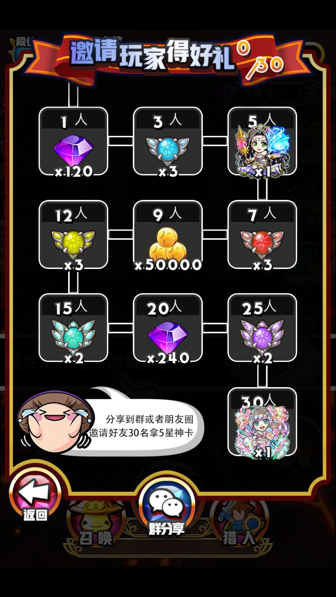 邀请三十个人拿5星神卡