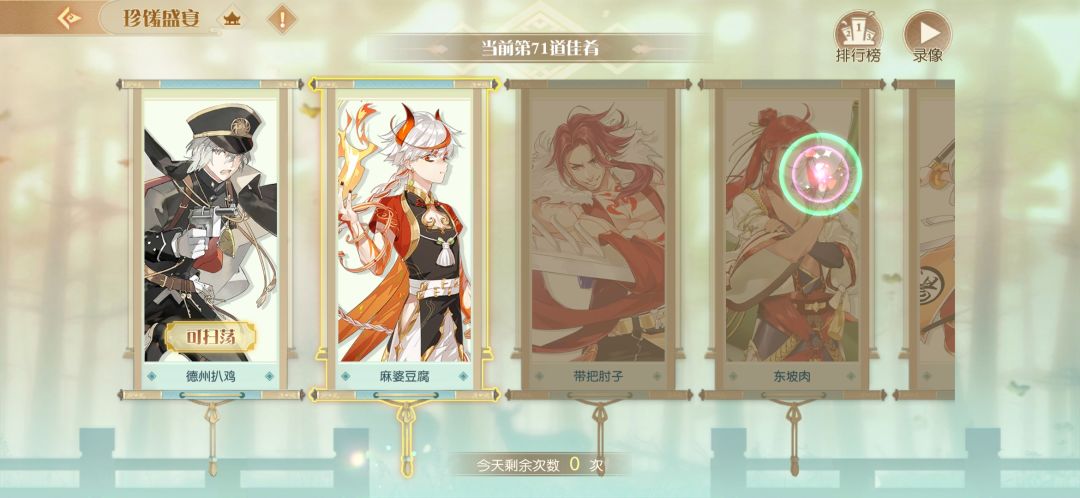 厨艺大赛通过挑战或者每周排名得桃子兑换,每天五次