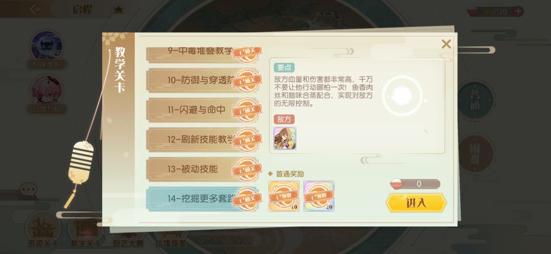 奖励非常的丰富,萌新一开始可以在这里了解基本的作战技巧,编队什么的,完成后有许多金玉和一个珍品食魂锅包肉