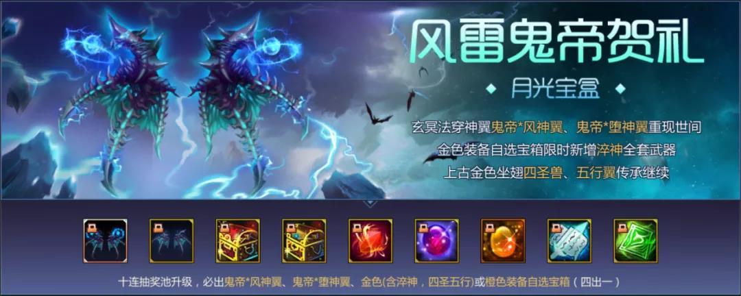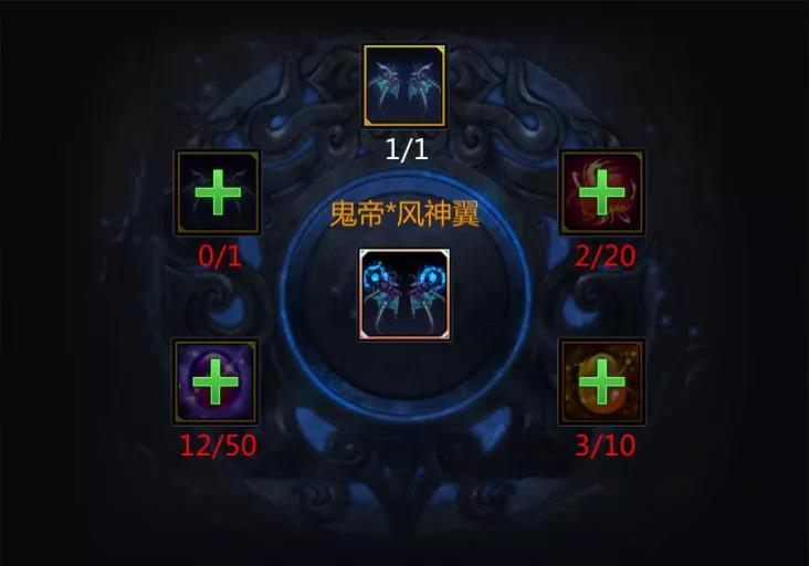 当然,与此同时,我们也开放了二者的合成通道,而二者的合成材料也可以直接从月光宝盒第六期中获得,所以对于已经攒够了合成材料的小伙伴,也可以选择通过合成获得鬼帝*堕神翼和鬼帝*风神翼哦~
