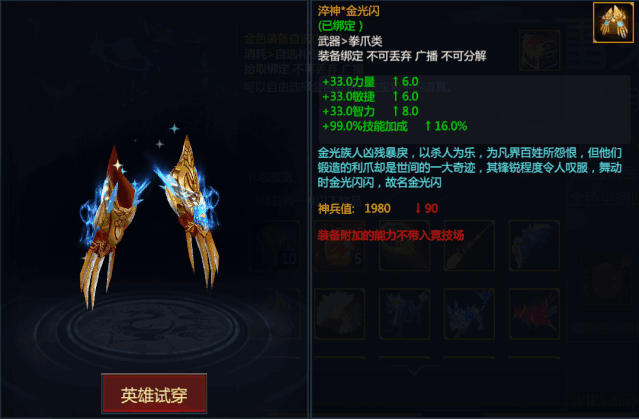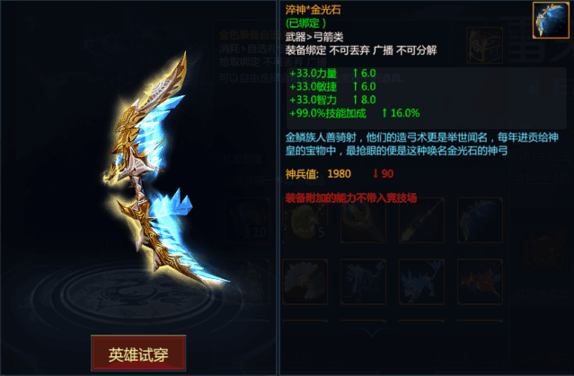 除了淬神系列武器,第六期金色装备自选里同样也包含了【能源石】和【传说梦之精元】,这都是合成鬼帝*风神翼和鬼帝*堕神翼的重要材料哦!