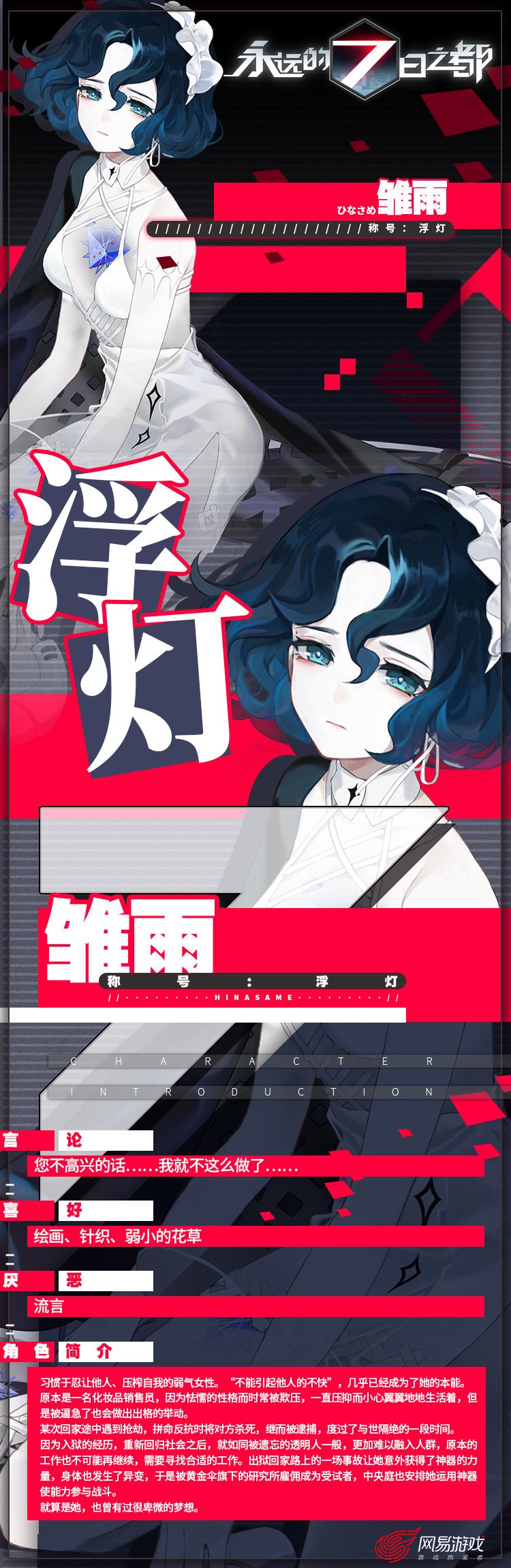 指挥使们晚上好~上周的饲料站给大家带来了新神器使黑死、雏雨的立绘图透,今天7都督将继续奉上他们二人的情报资料——一个是高端医学专家,一个是研究所受试者,他们背后会有着怎样的故事呢?让我们来一起看看吧~