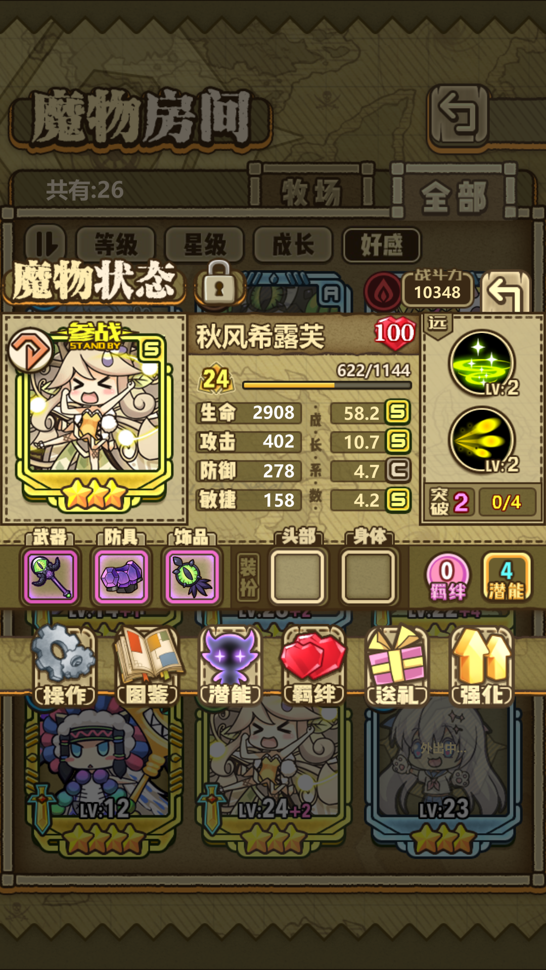 非洲人,六次氪金十连,只有四个四星,连个五星都没有,等级什么的不用看,还有一些粮能用,全都是懒人搭配(也就是看起来好用就用),有没有大佬帮忙搭配下,卡在4-20实在打不动了,拜谢