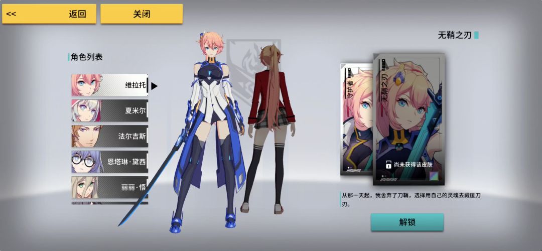 《VGAME:消零世界》此次安卓公测包括了9位角色,一共35套服装,具体如下: