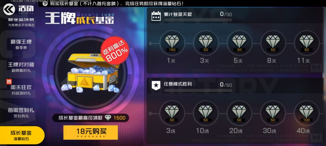 如果微氪的话,可以选择购买新手钻石基金帮助,可以得1800钻石
