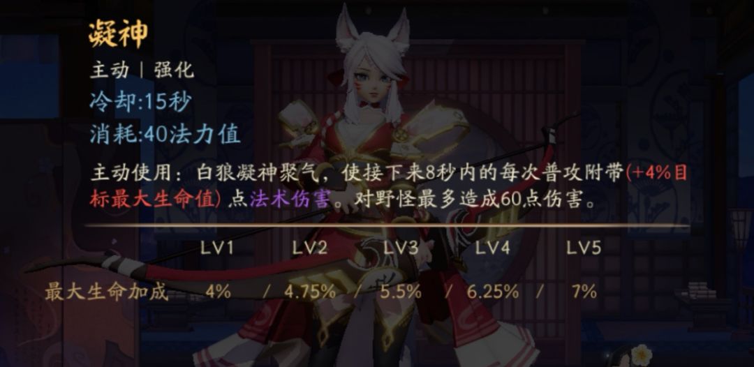 三技能:强化,白狼的灵魂技能,白狼打人痛不痛全看三技能开的是否及时(打团点三技能准没错,这是废话(눈_눈)),百分比伤害的普攻加成,你值得拥有。