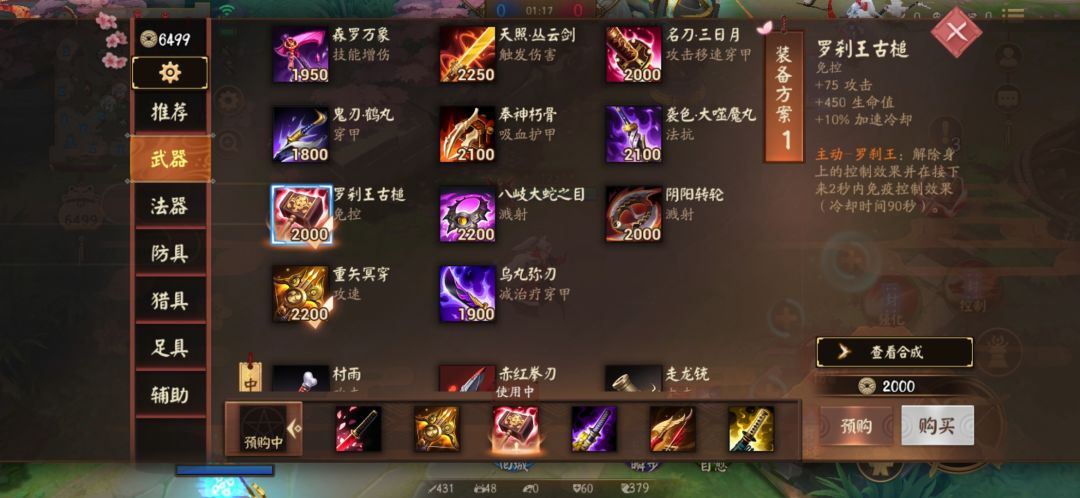 这套出装适用于对方前排较多的情况,在装备成型后,将鞋子换成免控锤即可
