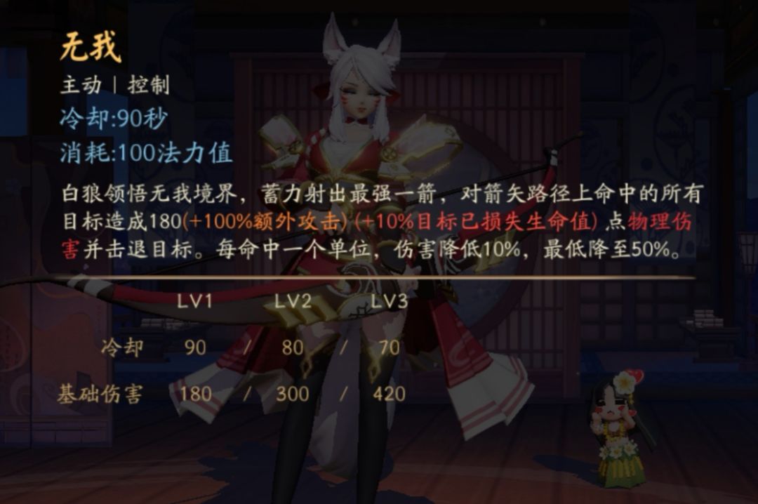 甚至你不需要会玩这个式神,在射核版本有麒麟吃的情况下,白狼的发育周期变短,成型更快,有辅助和队友保护的情况下,装备成型的白狼可能会达到某种意义上的一打五。(队友全员工具人)
