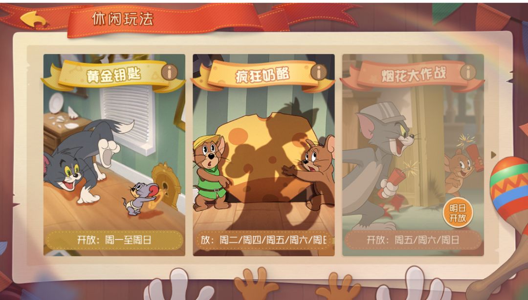 *你是否总觉得疯狂奶酪赛玩不够?你是否喜欢在找钥匙期间与对手斗智斗勇?本周更新后,休闲玩法每日轮换功能将正式开放啦!快叫上你的好朋友一起来玩耍吧!