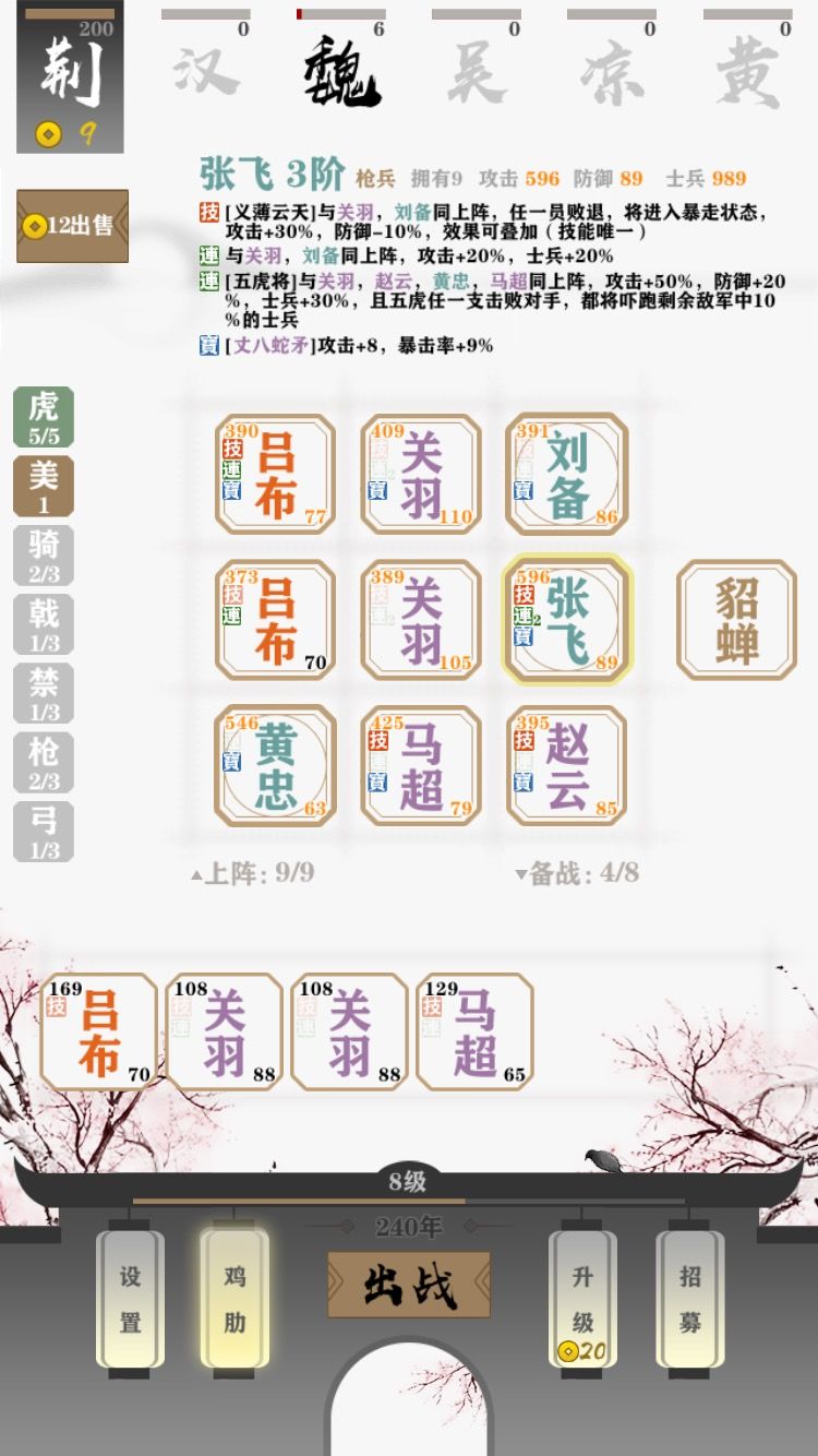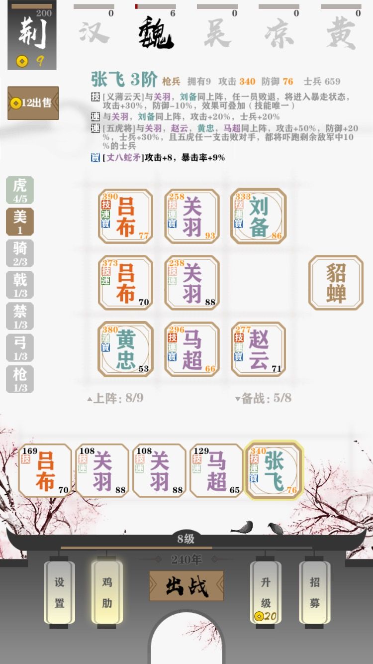再给大家看看三星裸状态的张飞340(其中有8点武器攻击,4点五虎事件,五点桃源,五点三英战吕布,合计22点攻击纯收益)