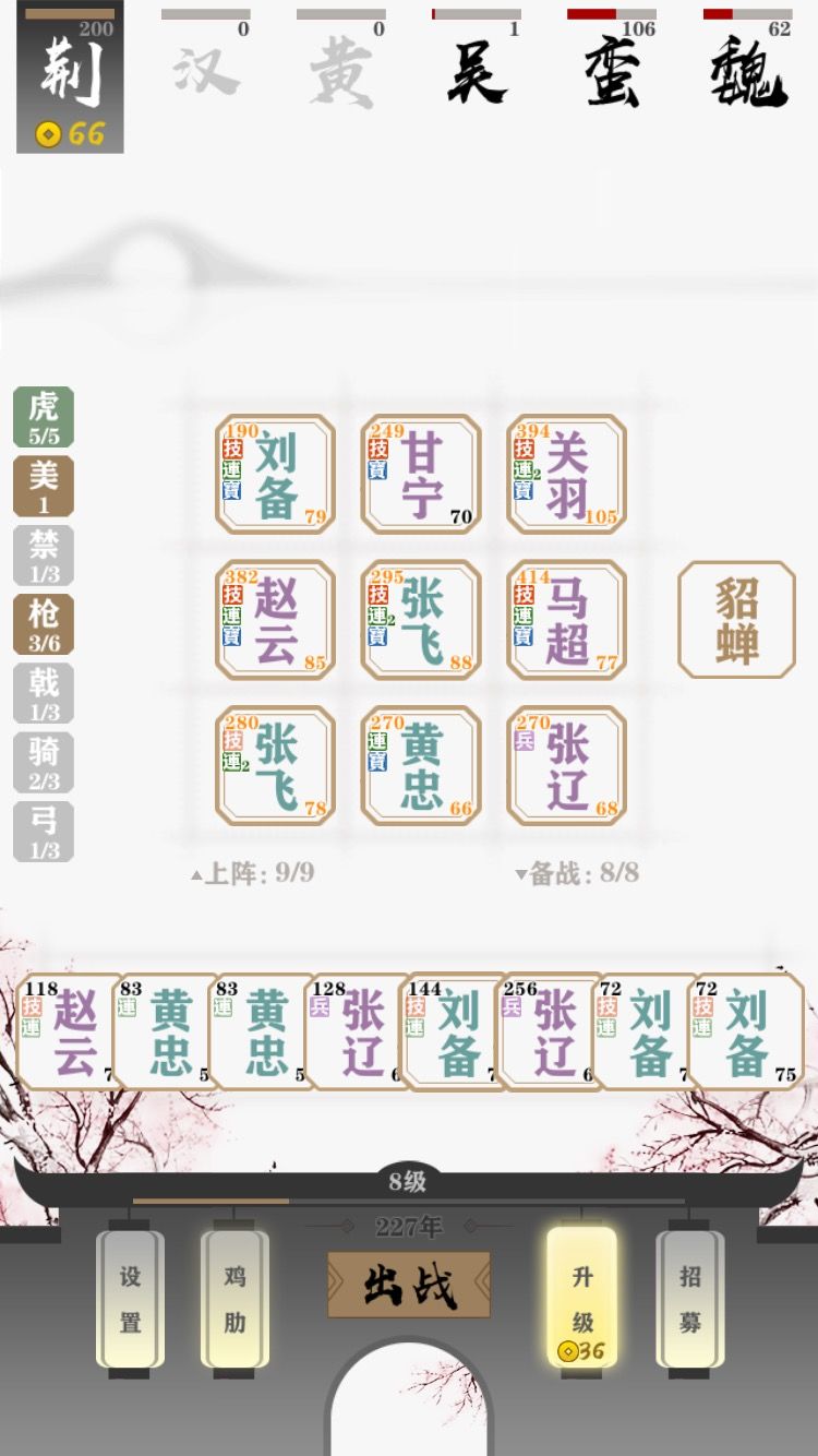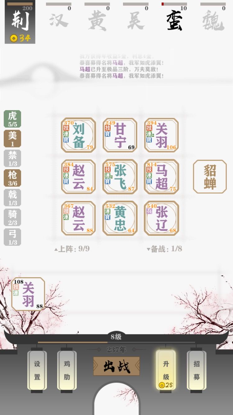 ps:当然,如果来了你要的将领武器和将领,导致你的金下降到五十金以下这也是值得的,但是下轮还是记得要保持五十金哟!