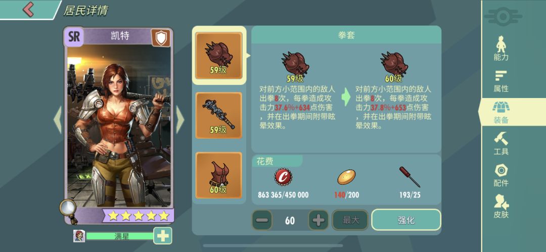 凯特的敏捷属性达到10点,当然这是5星的凯特,也就是说她的闪避是最厉害的,往往在实战中,凯特很容易爆出闪避,免了几次伤害,让凯特生存更加强。