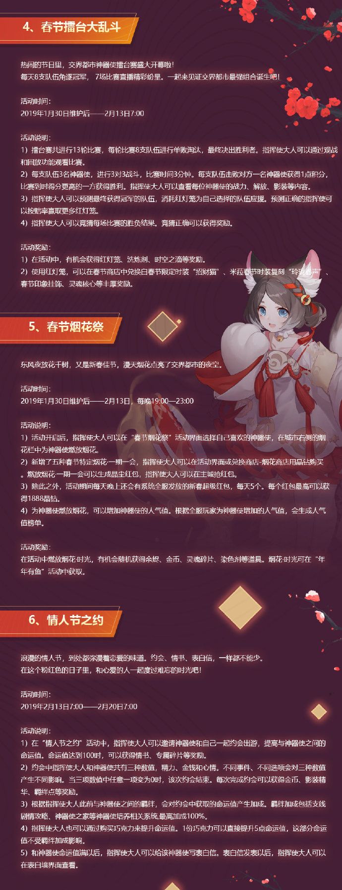 本次更新后,「炎烬」重渊和「琳琅」萝月将会正式登陆交界都市,神器使之家也迎来第六批住客啦!春节将至,这次阿官还带来了说好的春节系列活动的详细预告海报!更多更新内容,请戳下方了解↓
