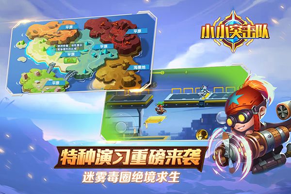 《小小突击队》推出独特横版视角大逃杀,远离第一人称眩晕感,六大地图联结传送,50人空降绝地厮杀!玩家在毒圈围困中,穿越机关雷区,拾物资、藏迷雾、怼技能,拼策略!更有推塔、据点、夺旗、机械BOSS战等丰富玩法,热血枪战即刻开团!