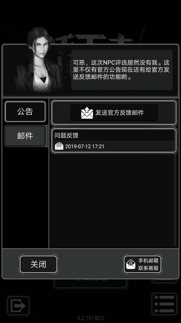 邮件:在这里可以与官方客服联系,也可以查看游戏公告