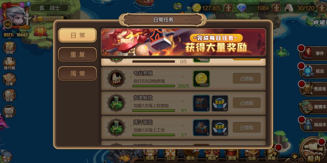 所有的任务都是昨天的今天没更新,我今天一天都以为大家都出bug了,没想刚刚一问是我一个人这样,好几次都这样,就我一个人出问题?如图,我奴隶船今天都没打,任务却完成了,今天所有任务都没做,却显示完成,进度还是昨天的,扫荡也是一上号0次,搞什么?每次更新总有问题,请问你们都更新了什么啊?修复bug然后制造新bug么?这bug是越来越多,以前偶尔出现一次,现在是隔两天就得反馈一次,也太NM累了吧!