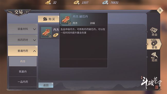 1、五品炼药师:四品高级经验满了可以直接升级五品,炼制龙力丹,不需要卡经验,开始往五品中级爬,去寄售花2000金币买个破厄丹丹方,开始炼制,在这,你可以选择直接跳过五品高级,卡到六品。