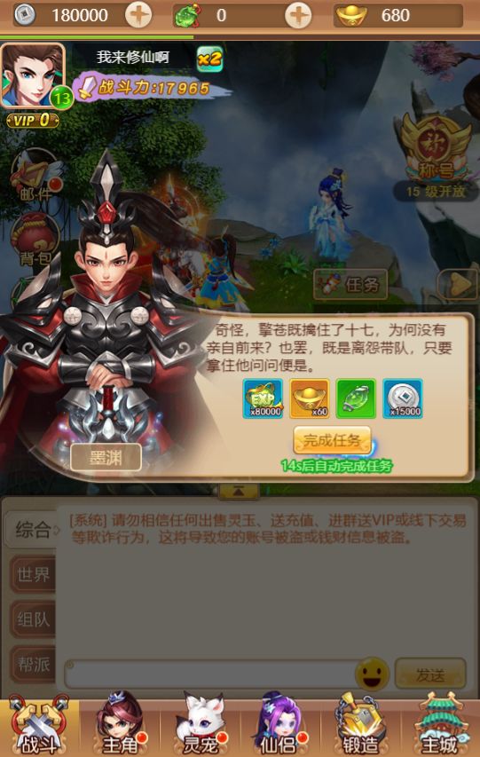 通过一系列的战斗和冒险,我们终于救出了白浅。我们的角色等级也通过经验奖励提升到了15级,并且解锁了称号功能。称号不仅可以顶在角色头上显示,还可以为角色增加战斗力。