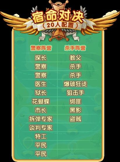 宿命对决20人场次的职业配置可从下方表格中浏览:
