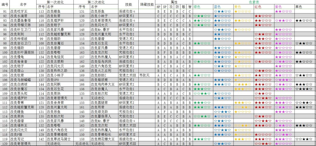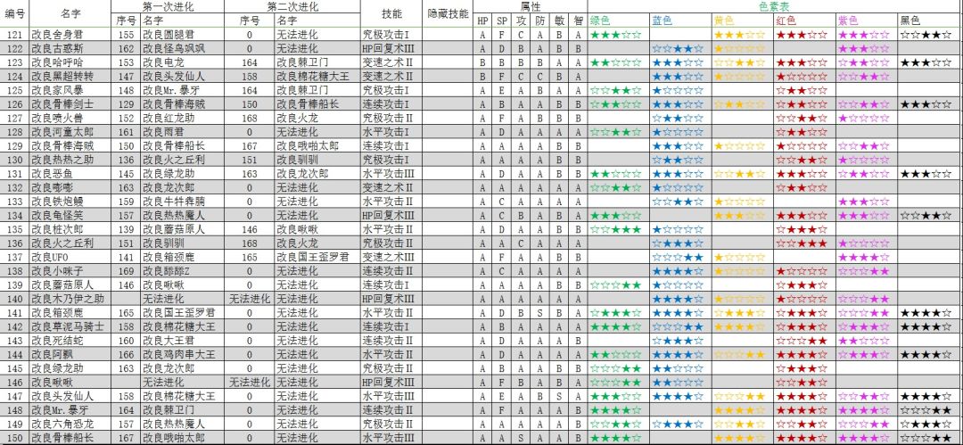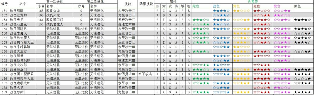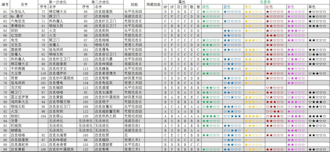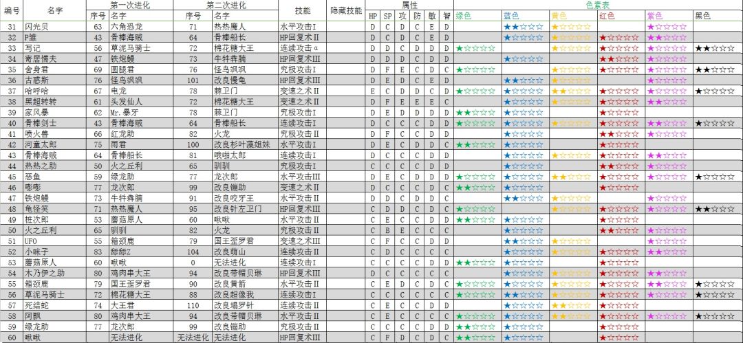 宠物进化表(旧版)