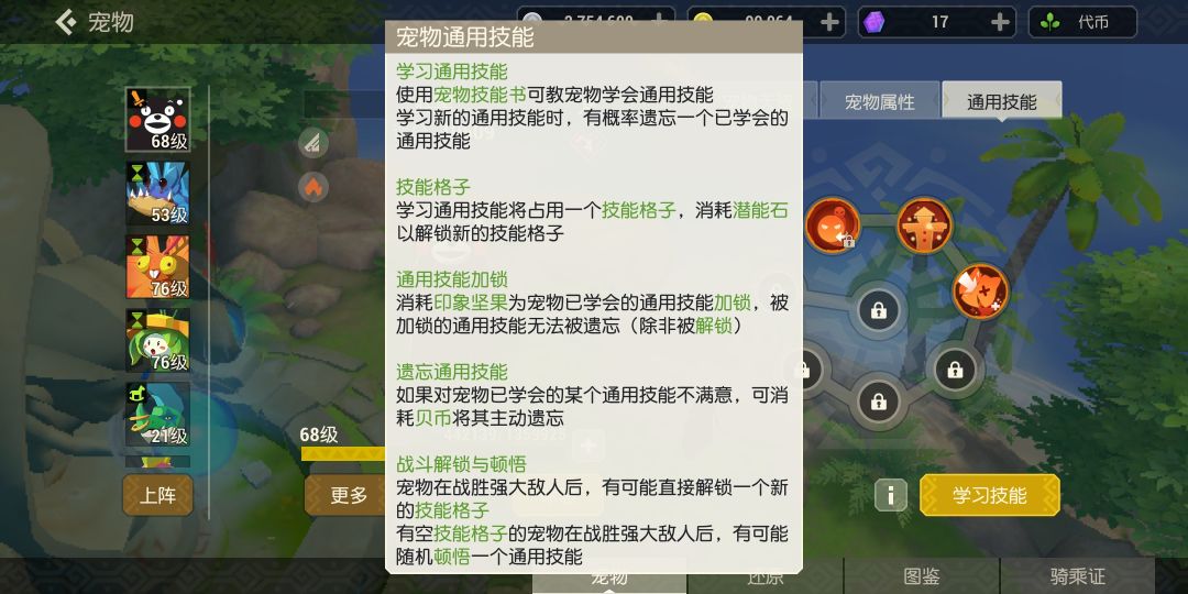 这个宠物学习技能机制就离谱,辛辛苦苦赚的金币买的技能书,学了还有几率忘记前面的一个技能,就离谱好吧,这不是坑嘛,锁也只能锁一个。忘记了就只能怪自己脸黑?我一天钓鱼钓那么久,回头来买些技能书还给学忘了?