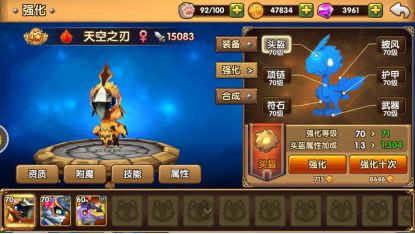 如上图所示,天空之刃佩戴的是40级的普通的野蛮人头盔,而头盔的强化等级为70级,则其佩戴的普通的野蛮人头盔需要加上1.3的加成方为头盔部位的全部属性。所以各位训练师在为幻宠追寻高级装备的同时不要忘记提升各部位的强化等级,这样才能发挥出装备给幻宠带来的全部威力。