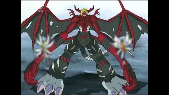 很狂妄自大的数码宝贝,其实实力也就一般般,作为黑暗四天王之一,他的自信心甚至比小丑皇还大,最后被战斗暴龙兽的战斗龙卷风击碎身体,可以说是死的最惨的数码宝贝。