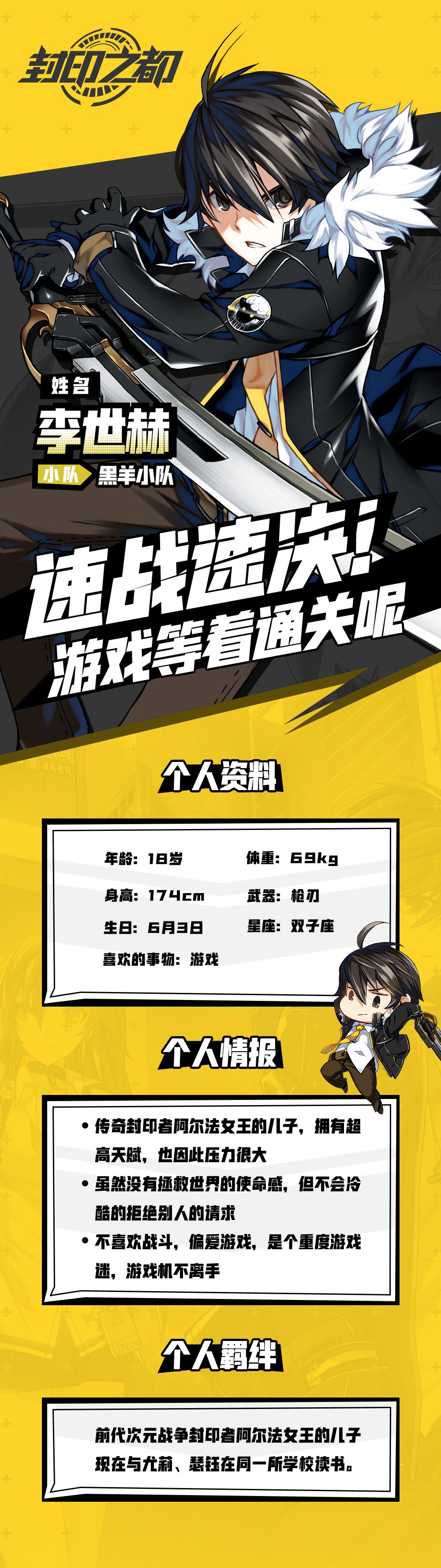 身为阿尔法女王的儿子,世赫是一个天赋超高的封印者,因而从小被寄予厚望,又因为青春期的逆反心理,逃避战斗,沉迷游戏。