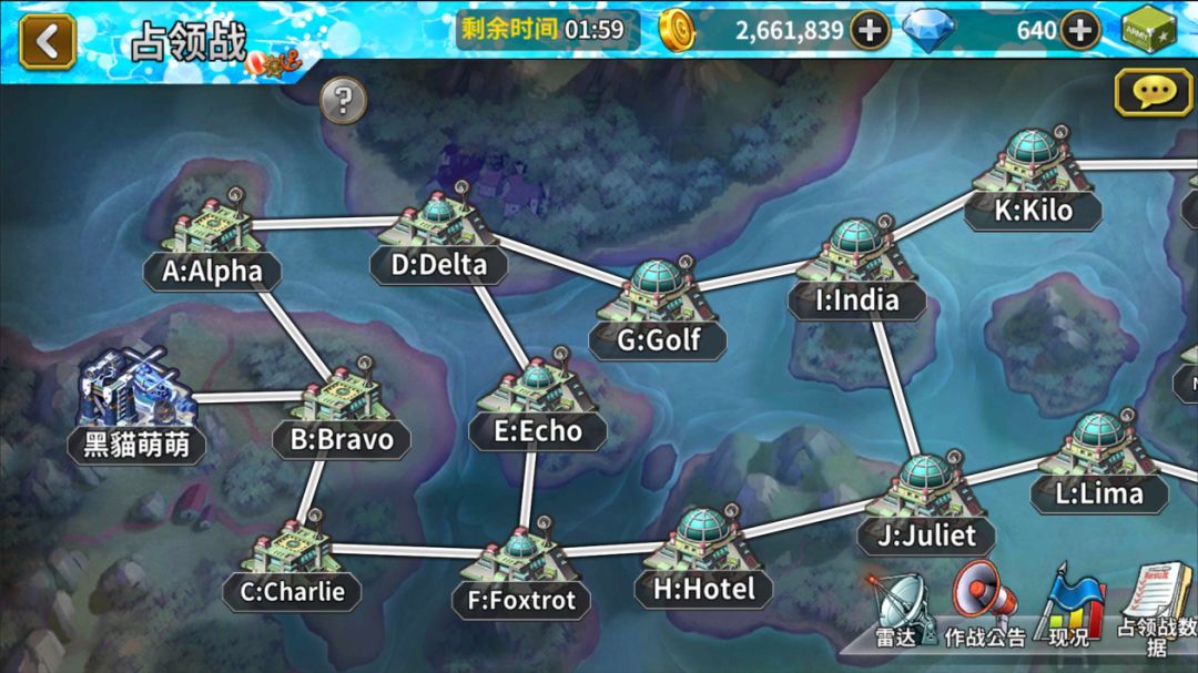 同时该据点就会显示有哪些玩家的部队正在向该据点“移动”,如果部队抵达该据点就会显示“待命”