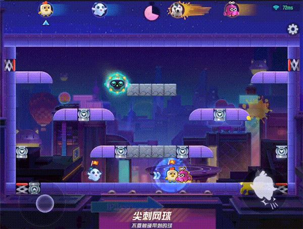 在这张地图里,一定要尽可能地远离弹簧,因为只要站在弹簧上,就会不受控制地被传送进“小黑屋”。而一旦处在“小黑屋”封闭狭小的空间中,就很难躲过尖刺网球的袭击。