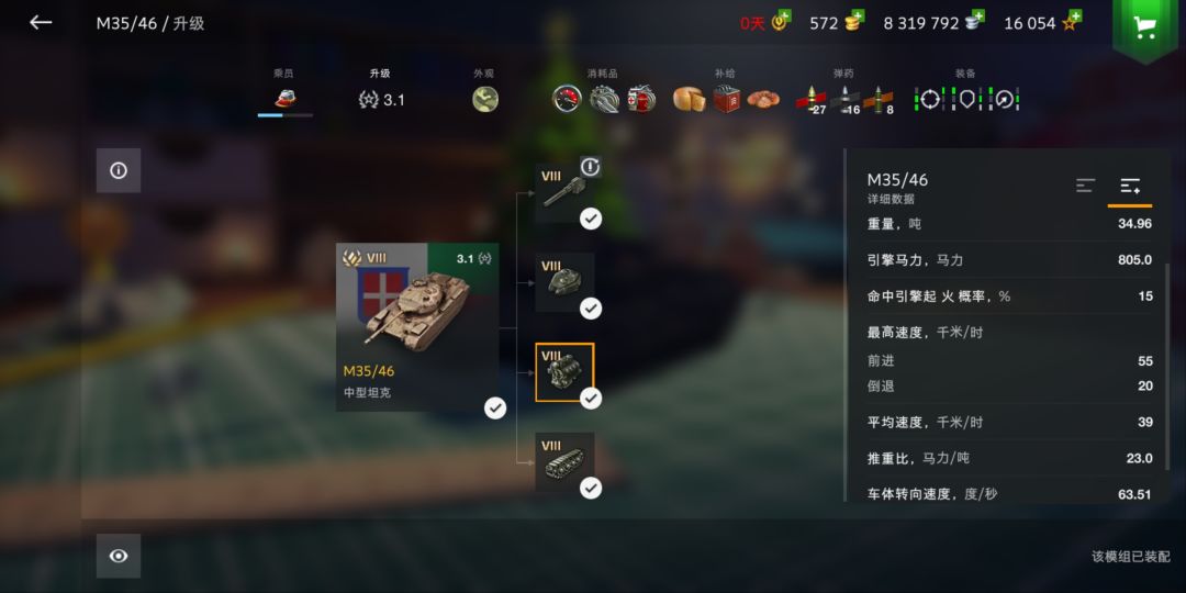 (装备栏都加的是引擎功率)可以看出,M35/46的机动性和44豹相比,差了不少,但是转向要略微快一点点,引擎起火概率也低5%装甲图我就不放了,两个车的车体都脆的不行,也都是炮盾硬,但是M35/46有头皮,卖头并不是很靠谱,短伸缩表现较好,侧后被HE乱穿,相对而言,44豹装甲更好