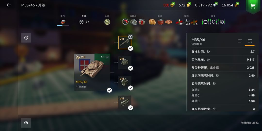 M35/46:机动相对其他八级MT较好,较为低矮的车体利于卖头伸缩,并且拥有9度俯角,山地战表现优良,移动扩圈较稳(此为本人亲测,瞎甩的都能中,打起来非常舒服)爆发需要5秒的时间,能打720左右,但是银币弹穿深较低