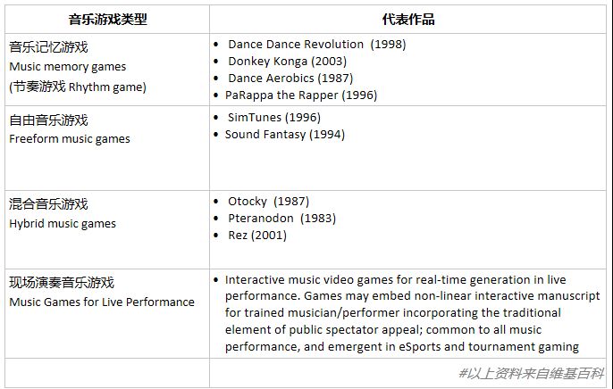 音乐游戏的种类繁多。首先音乐游戏就是由音频游戏(audio games,游戏中玩家仅凭借声音进行游戏)发展而来。另外音乐游戏也有多种类型,如音乐记忆游戏,自由音乐游戏,混合音乐游戏和混合音乐游戏,其中由音乐记忆游戏衍生的节奏游戏可以与智能手机的触摸屏结合,带来更好的音游体验,节奏游戏已经成为音游的代名词“手搓玻璃板”正是当下音游的发展趋势。