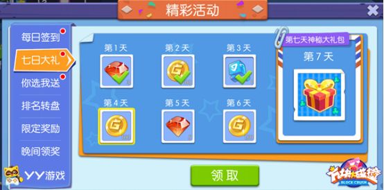②七日大礼:测试期间前七日每日登录都可领取金币、钻石、原石奖励,第七天更有神秘大礼等着你!