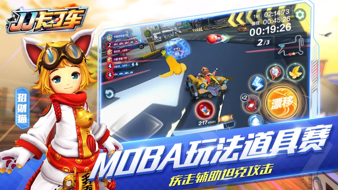 《JJ卡丁车》手游,独创了MOBA玩法的道具赛模式。传统赛车游戏的道具赛,玩家只通过对随机道具的获得与使用,来影响赛局;在《JJ卡丁车》中,将游戏角色分为4种职业类型,速度、攻击、坦克、辅助,再赋予每个职业不同的技能。