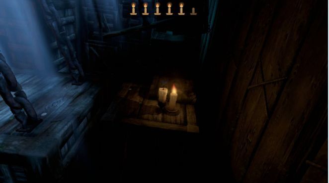 第二关一共需要点燃6根蜡烛,新增加了跷跷板元素。第1根是在起点右拐处,第2根是在起点直走处,第3根是在木箱平台右下方,第4根是在跷跷板左上方,第5根比较明显,然后往前走又是一个跷跷板,同原理点亮,直走通过铁索就是通关处。