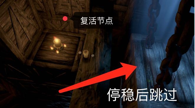 再跳跃回去,直走,点亮复活节点,等木箱停稳后跳跃过去