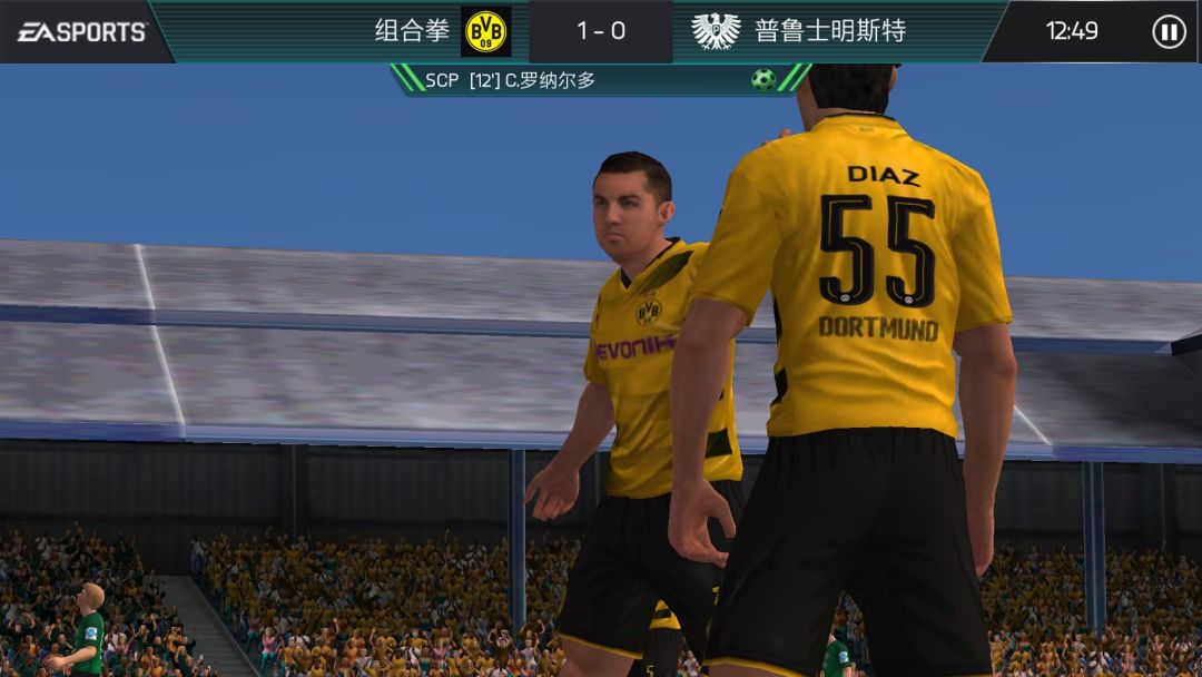 不得不说,这次FIFA足球世界,单拿出画面来对比是有些落后时代的,尤其是进球后的庆祝动画,球员们都非常僵硬,丝毫感觉不到进球的喜悦,而且人物、贴图也还是有着锯齿感,每当有回放或者动画时,草地的贴图,球衣等都让人尴尬。