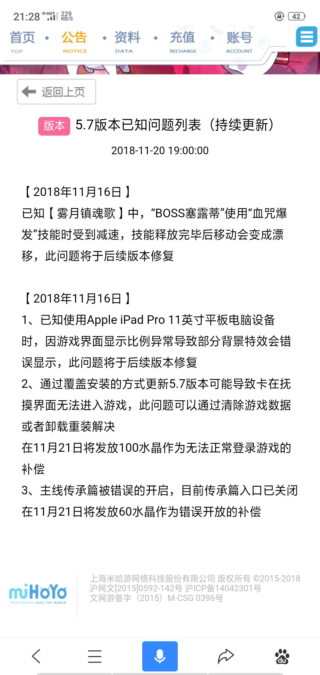 5.7版本已知问题列表(来自MIHOYO)