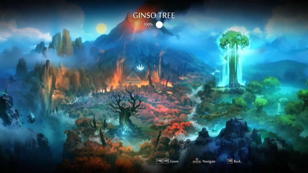 游戏是一个偏探索和跳跃的游戏,战斗在其次,通过不断的收集提升能力。而死亡后可以从上个存档点继续,难度适中。有几个地方如银之树还是很难的,但是一路上的风景太美了!它能让你感受到堪称华丽的游戏流程和直催人心的场景表现力。