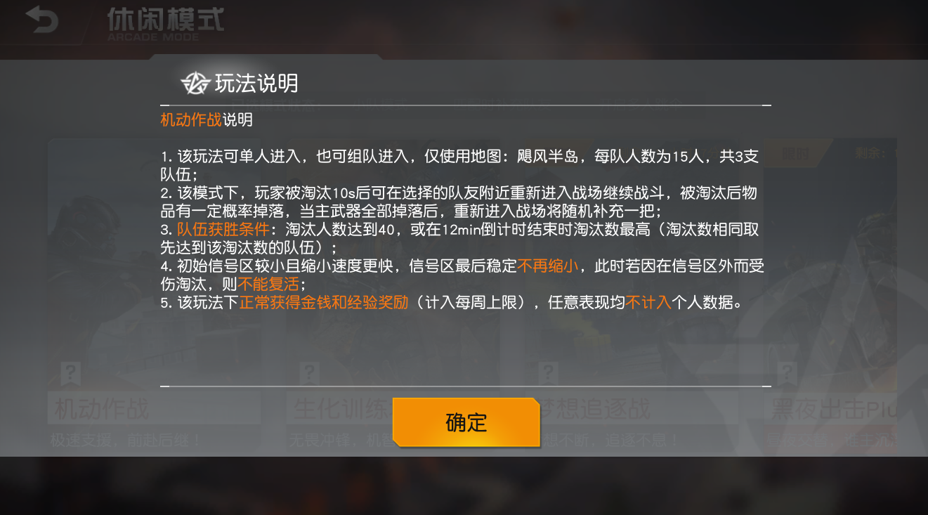 本来以为是可以在天上打灰机那种作战,不过emmmmm和想得不太一样?行吧,虽然还是一个在地面打架的玩法,不过机动作战和之前的休闲玩法都不太一样,那些在生化训练场被丧尸虐死的战士们这次可以一雪前耻了!!因为这个玩法,加入了【无限复活】噢!(°∀°)ノ