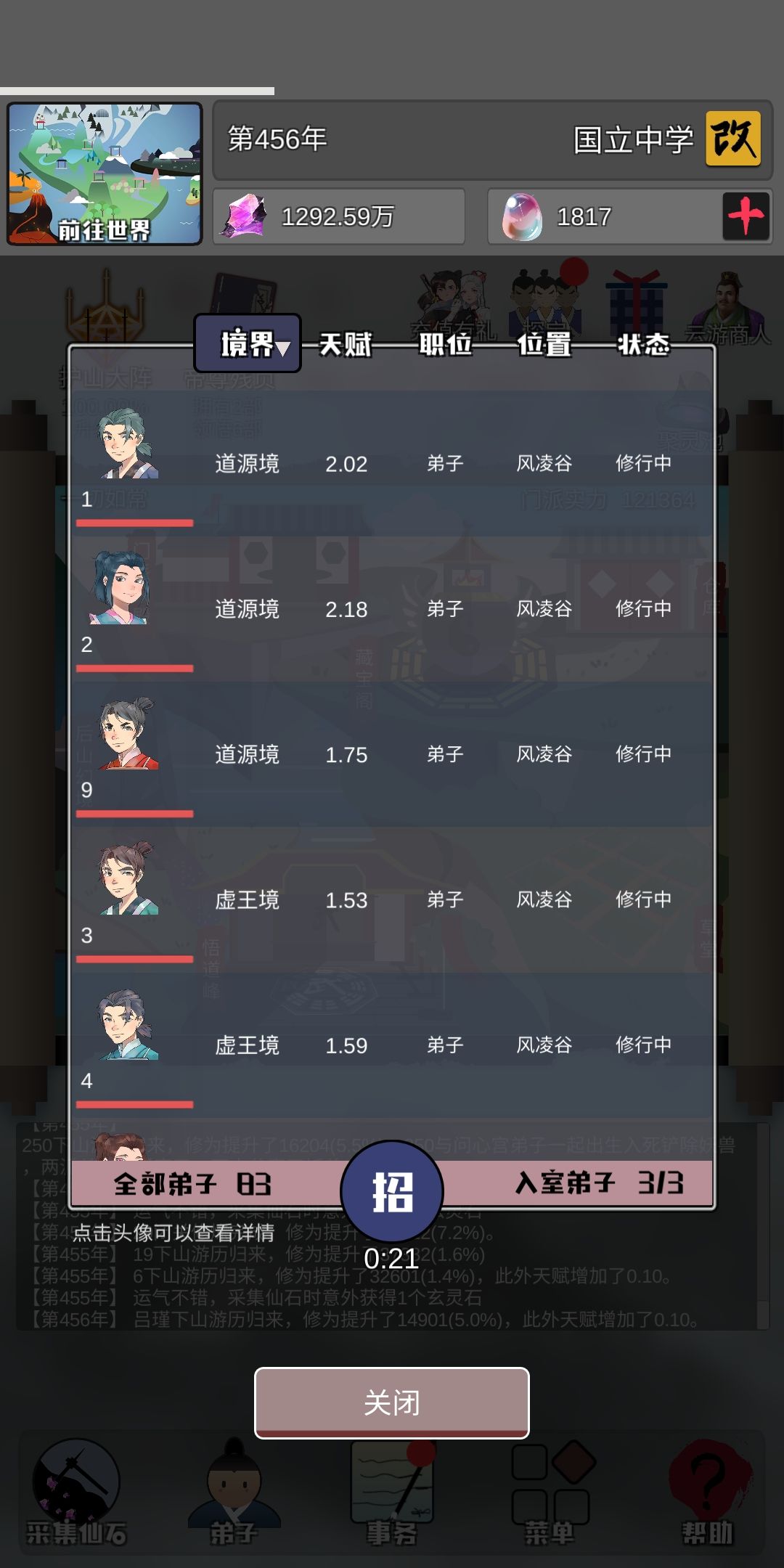 【悉心教导】:根据【天赋】按百分比给经验(适合给高境界高天赋)【一局超过50%的修炼经验来自这里】