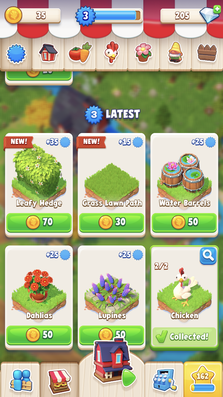 购买家具的金币从你的奖励塔中获取,或者可是在你小岛上砍树之类的领取,这类游戏挂机内容也是必不可少,种菜,等老母鸡下蛋,来获取金币与钻石。