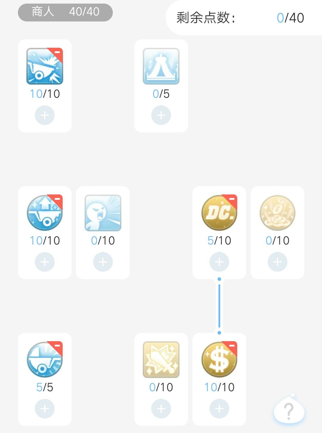 凶砍最大值5 手推车加速1 贪婪10 交易大师5 人形之光5 野蛮凶砍10,还有四点随便加