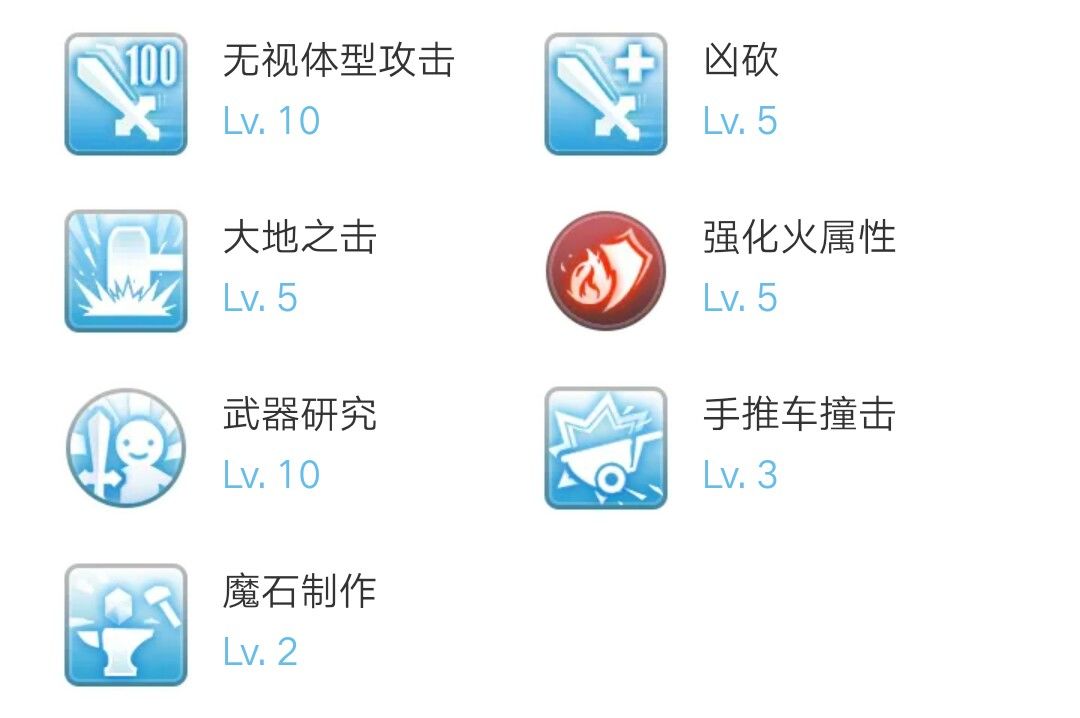 大声呐喊10 强化火属性5 人心之光10 野蛮凶砍5
