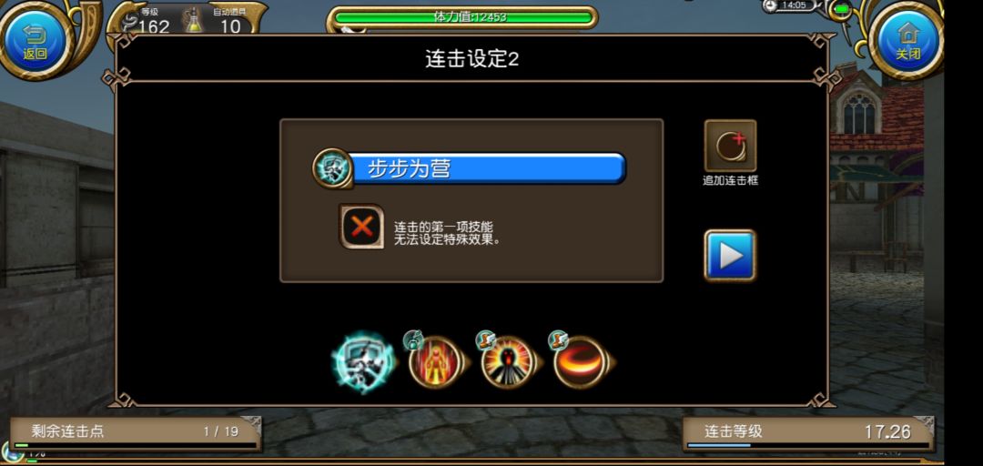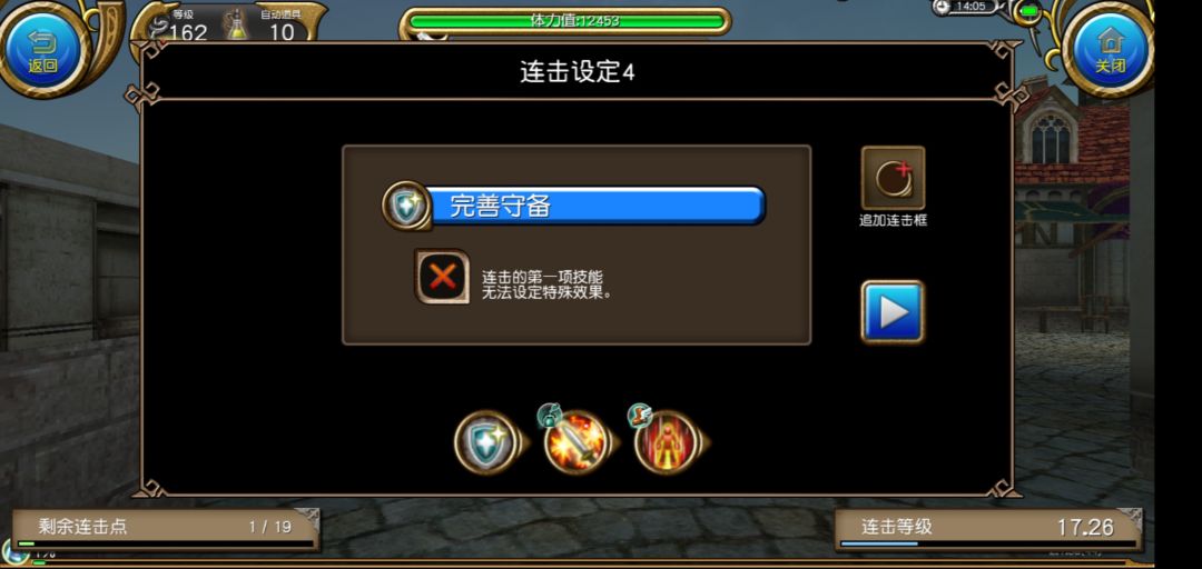 都是超好用的连击不解释!(其实是因为懒)顺带一提,这五个连击,20点连击点是不够用的,所以根据实际需要而选择,主输出的时候仇恨连可以换成流星连,主坦的时候则相反,单刷的时候任意,请自行选择~