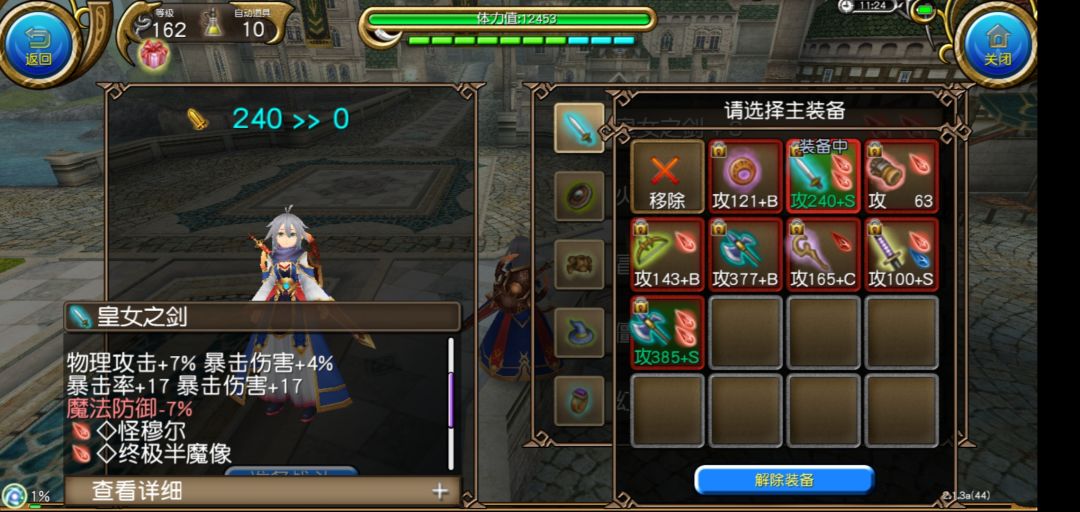 兽牙:没钱用力四的替代品,(其实力四也没多好,才不是没有的酸呢,蛐蛐8点力量什么的)更没钱的时候只能用半魔像了…… 王石用:皇女+邪凤,加蓝加血加攻回。 接下来是技能加点,重点来了,因为是普遍性的骑士剑,所以技能加点只是一种思考方式,同样是那句话:请根据自身需求而选择
