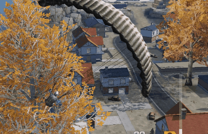 开伞后,将视角调整至俯视视角,此时滑行时间变短能够迅速降落至目标点,适用于降落点把握的十分精确的玩家。这种俯视滑行也是常见的开伞姿势,可以缩短玩家的落地时长,先人一步,别人还在空中,而你的枪口已经瞄准了对方。